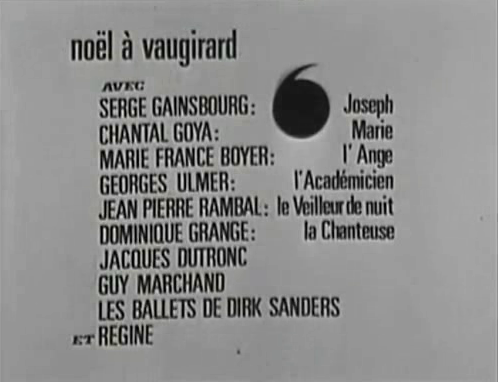 It's been exactly 50 years since this odd Christmas sketch first aired on French TV, so I thought it might be a good time to revisit it, this time in more detail than when I first posted it ten years ago. I have also realised the version I originally shared is abridged, so wanted to post the full version, which is four-and-a-half minutes longer. 'Noël à Vaugirard' was a short film that appeared in an episode of Dim Dam Dom, broadcast on December 23, 1966. Starring Serge Gainsbourg as Joseph and Chantal Goya as Marie (Mary), it's a comedic telling of the Nativity story updated for its young, modern audience, filmed at the abbatoirs